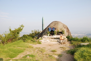 | 山頂にはところどころに大きな石が転がっています。 天気のよい日は,博多から遠く有明方面まで眺めることができます。 |