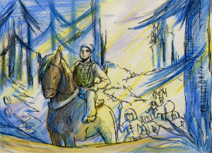 | 飛鳥を経て吉野に向かう「翼をつけた虎」 | ||