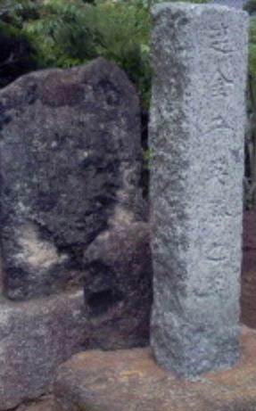 内裏塚より耳面刀自媛の遺骨を掘り出して遷しかえられた埋葬地です。耳面刀自陵墓と書かれた石碑が正面にあります。この横に石柱があるのですが、そこに書かれている文字は「連金子英勝之墓」です。「連金」=中臣連金(なかとみのむらじかね:大友皇子の重臣)で、その子の「英勝(あかつ)」と読むことができます。『匝瑳郡誌』の内裏神社のことについて書かれた記述にも「中臣英勝」という名が見られ、耳面刀自媛とともにこの地に来たことが伝えられてきました。この石碑は単に伝承によって建てられたものではなく、実はここが英勝の墓であることを証明するものがありました。それは、明治24年(1891年)のことです。塚の一部が崩れているのがわかり、中から墓石(石棺の蓋石)と思われる石が見つかりました。その墓石には「連金子英勝」と刻まれており、ここは「連金子英勝之墓」ということがわかりました。それは、耳面刀自媛御陵とされる敷地内に英勝の墓を造ったことになるかと思います。石板の文字は年月が経って見えなくなってしまいましたが、ここから出土したことには間違いはありません。これは事実です。ここの被葬者が中臣英勝ならば、壬申の乱の後、何らかの理由でここに移住することになったと考えられます。この地で天皇が派遣した討伐軍と戦ったという伝承は見つかりません。そのため、大津京を脱出し、陸路または海路でやってきた人たちがいて九十九里浜付近に住み着いたのではないかと考えます。 |